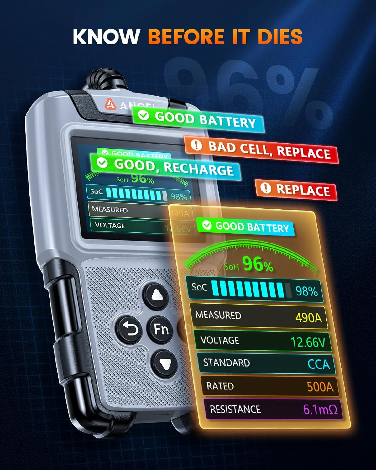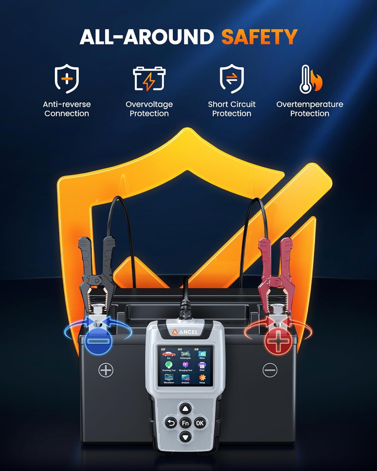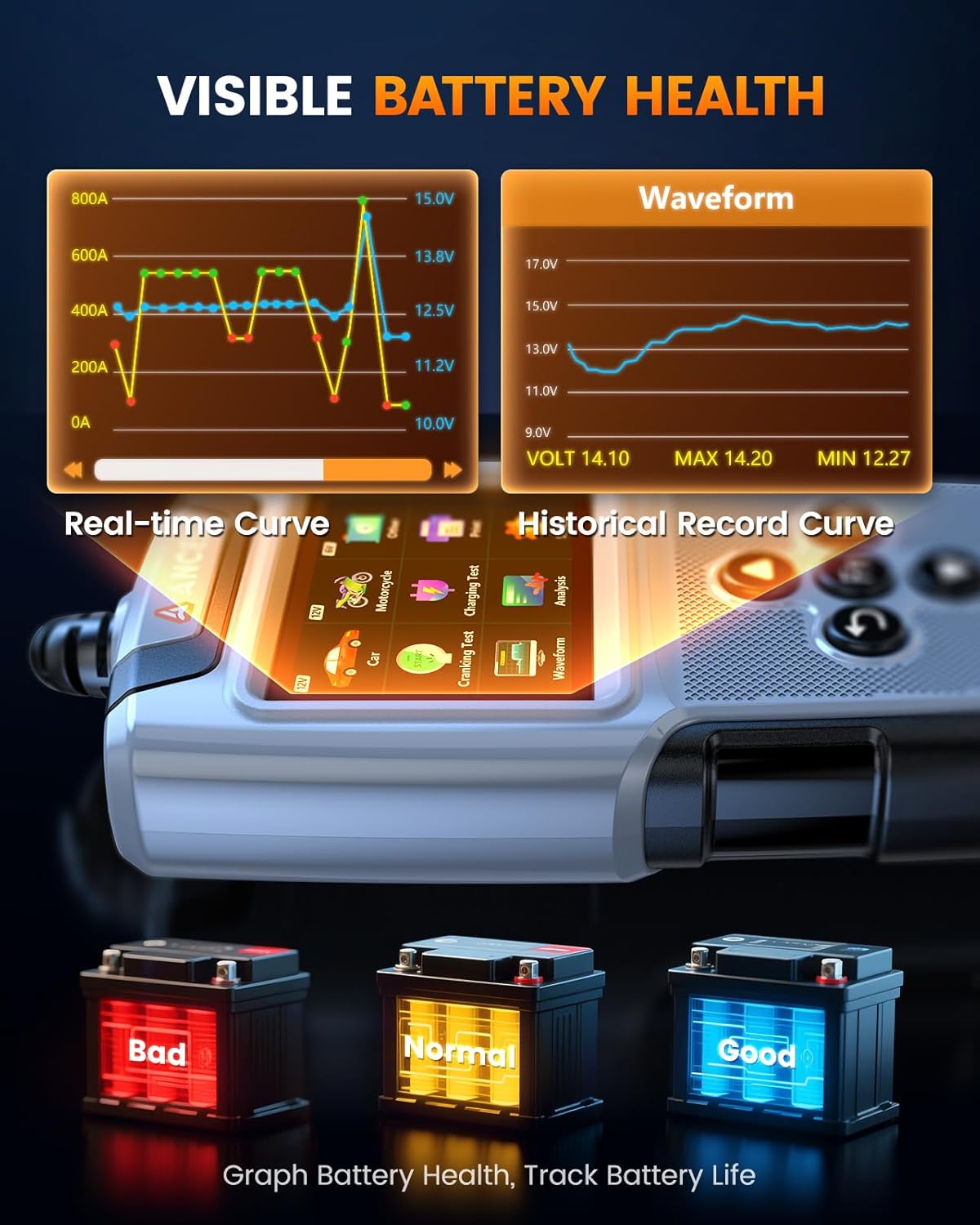 - Three-in-one functionality: Battery Health Test, Cranking Test, and Charging System Test.