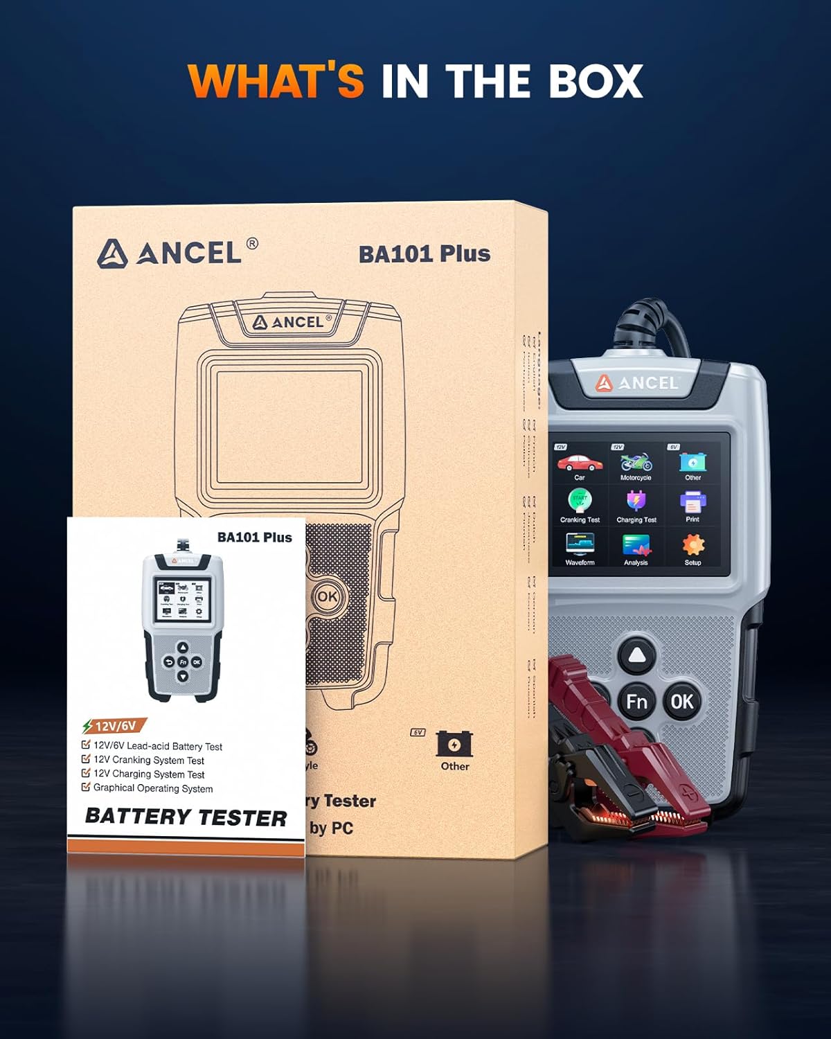 Introducing the ANCEL BA101 PLUS, a versatile and reliable battery tester designed for professional environments and DIY enthusiasts alike. With its robust, lightweight composite casing and an upgraded diagnostic capacity, this tool is your go-to solution for maintaining lead-acid batteries across a range of vehicles. Whether you’re checking battery health, starter faults, or alternator efficiency, this three-in-one device delivers precision and clarity with every use.