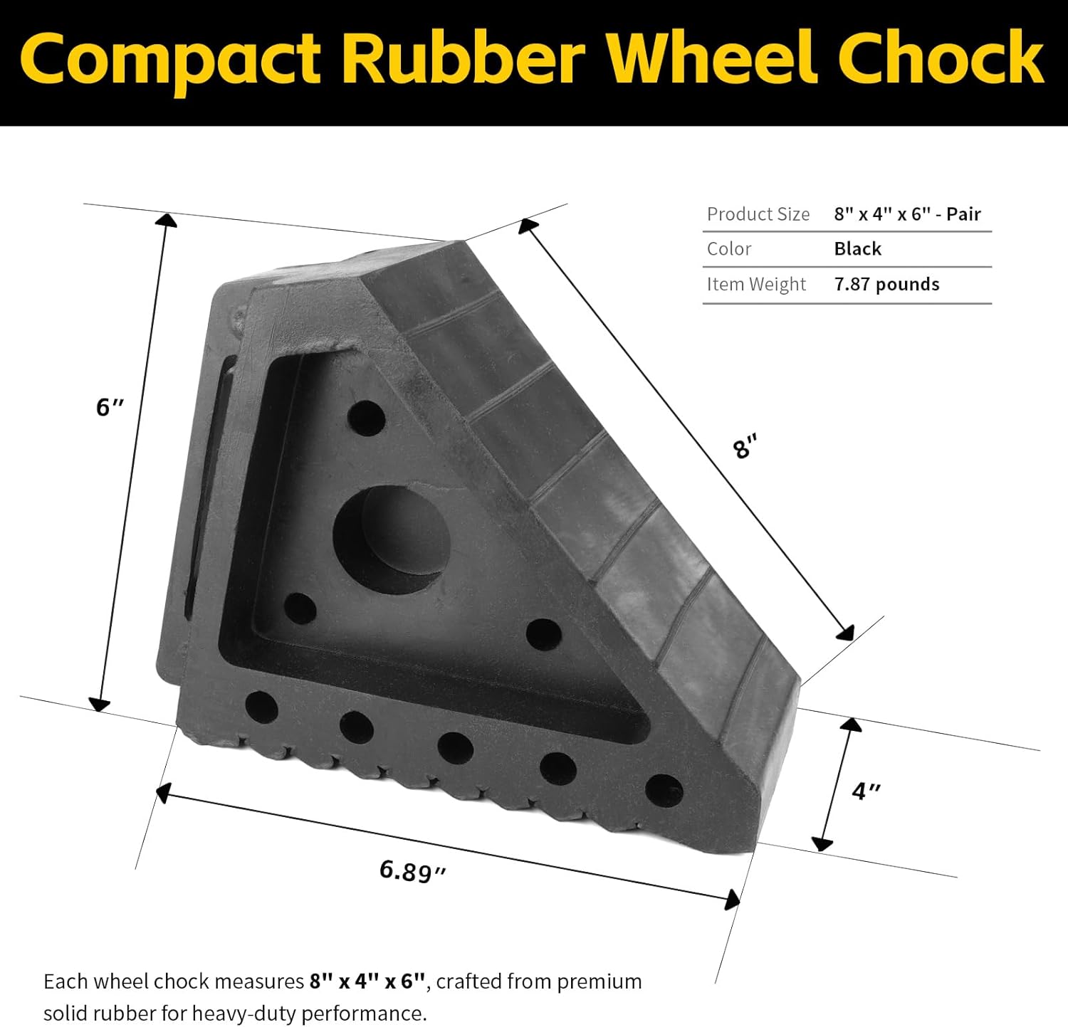 • Heavy-Duty Solid Rubber Construction: Crafted from premium-grade molded rubber, these chocks resist cracking, crushing, and deformation, offering long-lasting stability under vehicle weight.