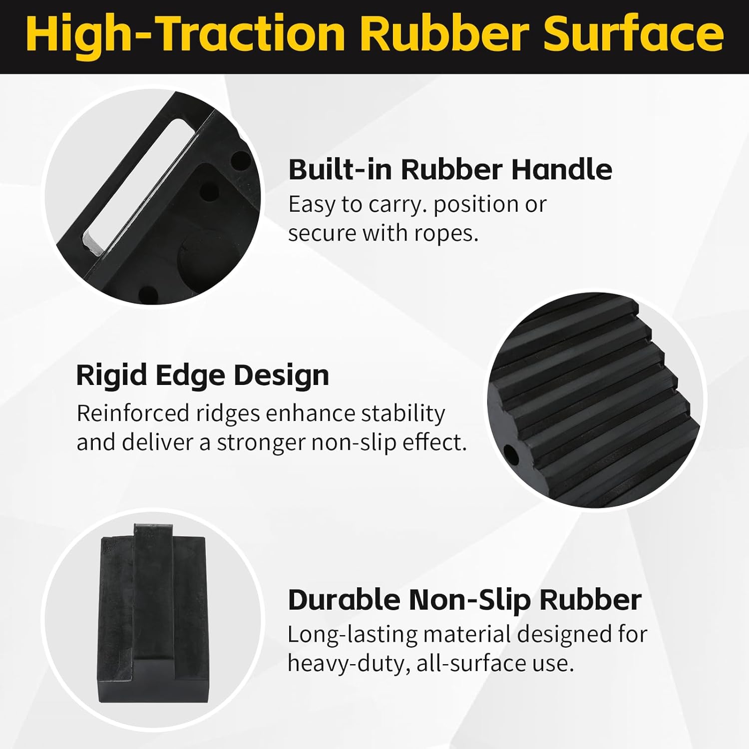 • Non-Slip Traction Pads: The high-friction surface effectively grips pavement, gravel, and smooth garage floors to prevent tire movement.